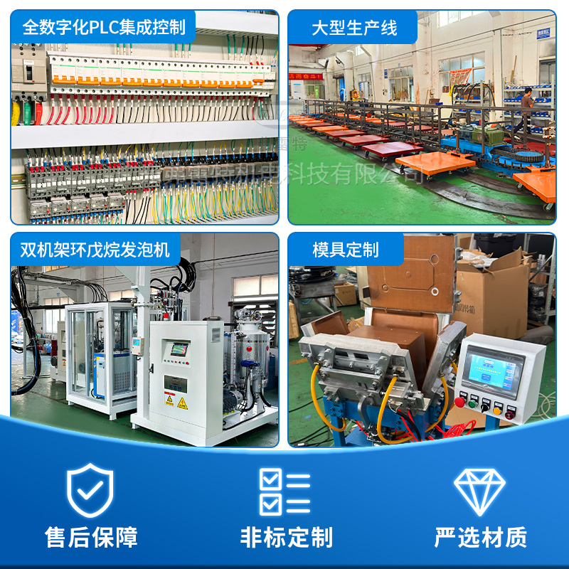 環戊烷的環形發泡生產線適用于,生產保溫箱、車載冰箱等環戊烷類型的產品。環形發泡生產線以其連續性著稱,這種閉合循環系統可實現24小時不間斷生產,原料利用率高達98%以上,我們的環戊烷發泡機具有獨立防靜電房,烷氣濃度等級自動識別系統,西門子防爆電機等。