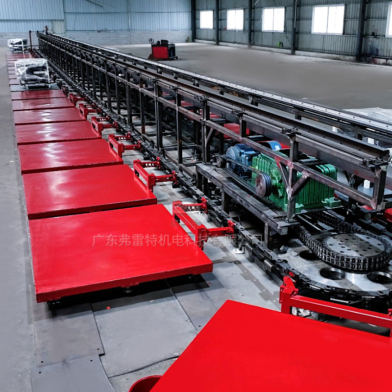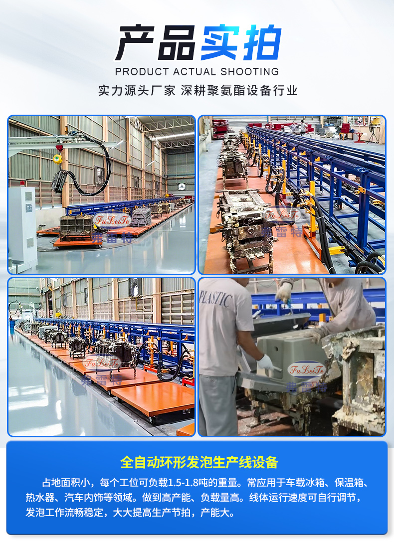 這是一條長33米帶有40個工位的車載冰箱大型環(huán)形發(fā)泡生產(chǎn)線。這條生產(chǎn)線的優(yōu)點(diǎn)是占地面積小,每個工位可負(fù)載1.5-1.8噸的重量。常應(yīng)用于車載冰箱、保溫箱、熱水器、汽車內(nèi)飾等領(lǐng)域。做到高產(chǎn)能、負(fù)載量高。廣東弗雷特是一家國家級高新技術(shù)企業(yè),科技中小型企業(yè),創(chuàng)新型企業(yè)和專精特新企業(yè)。
