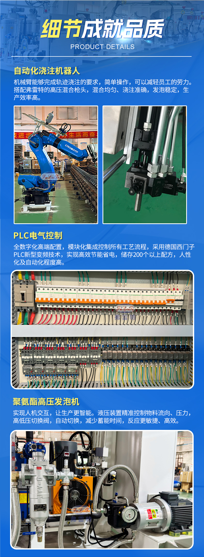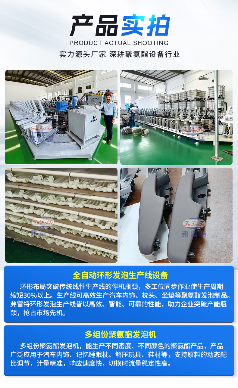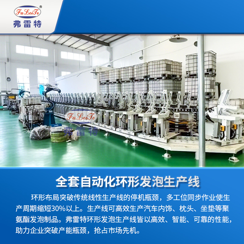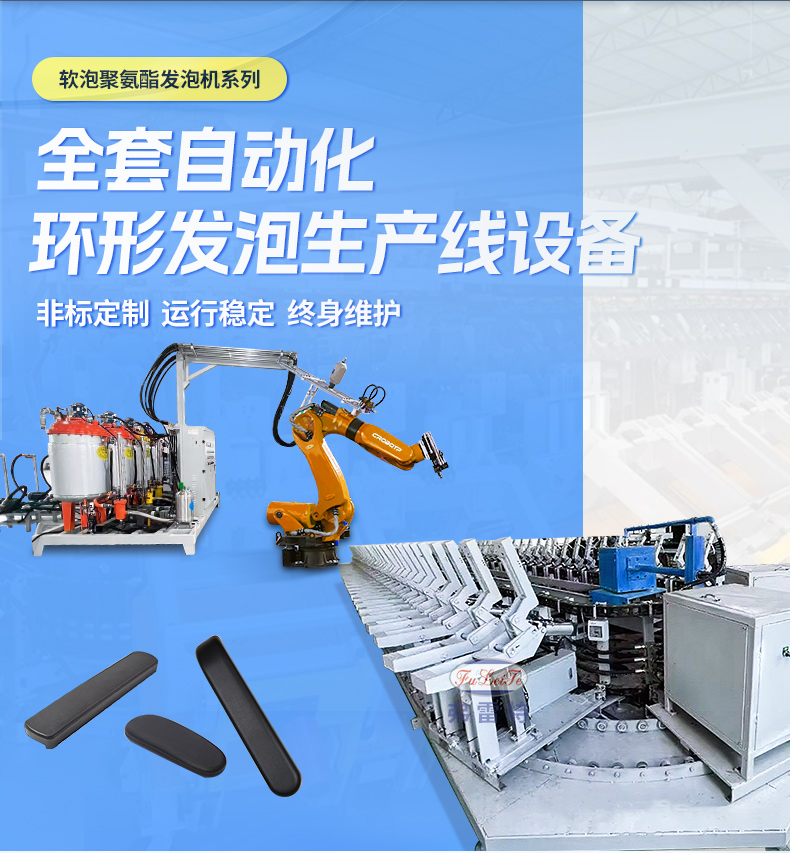 環形生產線主要適合慢回彈、高回彈海綿制品的發泡生產,是和精密發泡機配套使用的,能提高生產效率,減少勞動強度,提高產品質量。環形生產線、軟泡發泡機是生產慢回彈,高回彈發泡制品必不可少的設備。流水線上配套有模具溫度控制系統,電源和氣源系統配置等,流水線傳動采用鏈條傳動裝置,這樣大大減少轉動電機的功率,達到節能省電的效果,旋轉速度無極可調,性能穩定,自動化程度高,擁有極高的性價比。