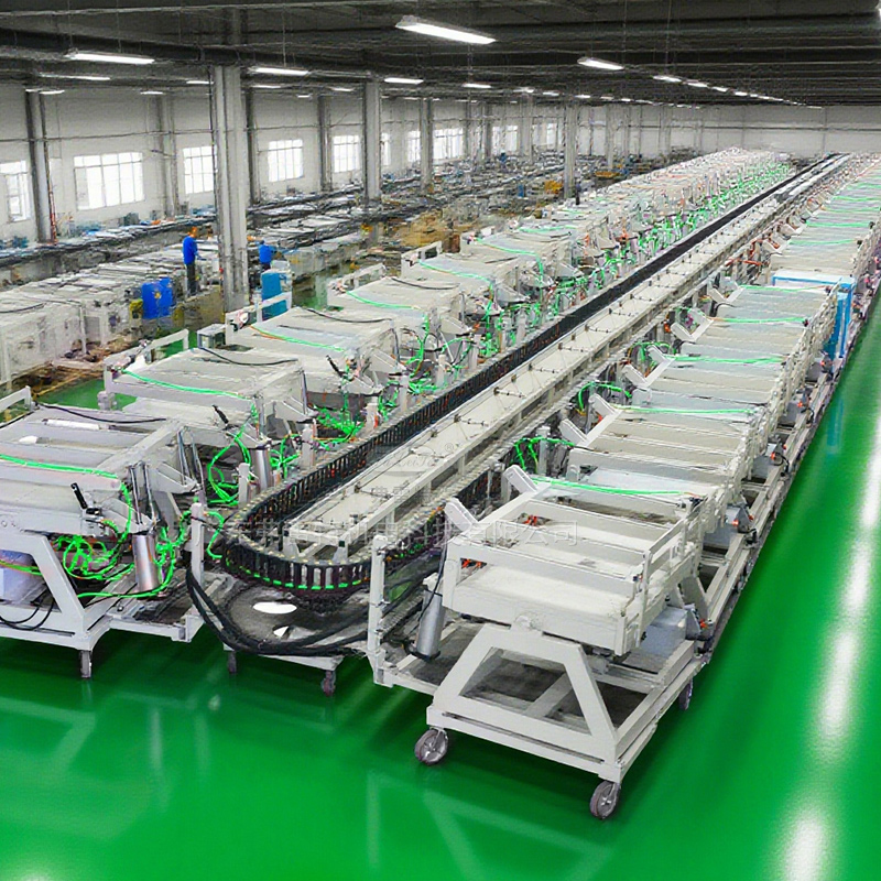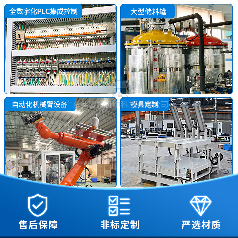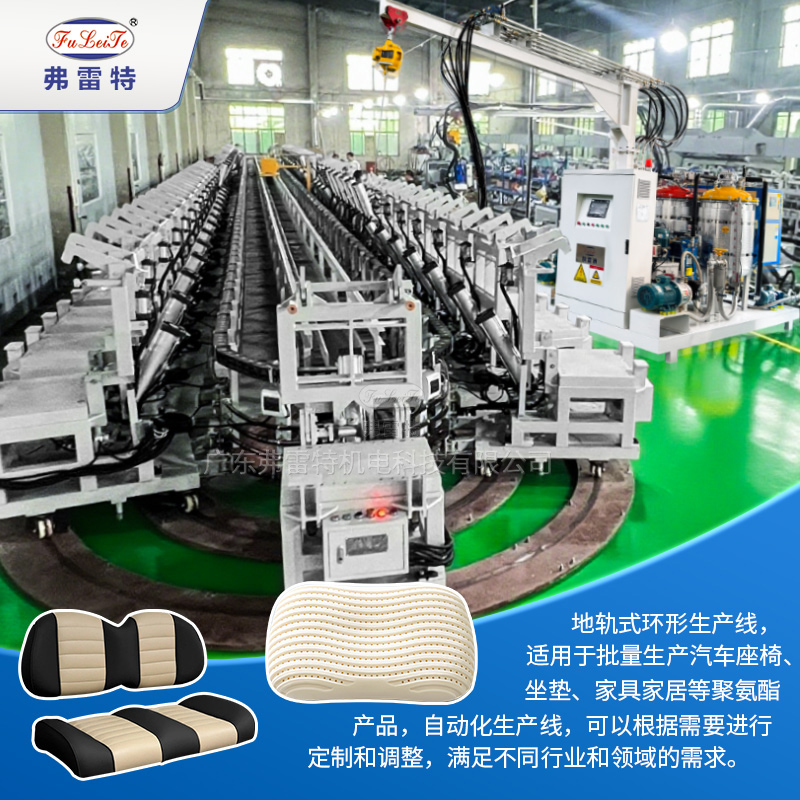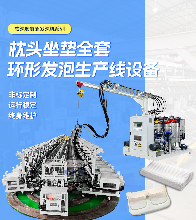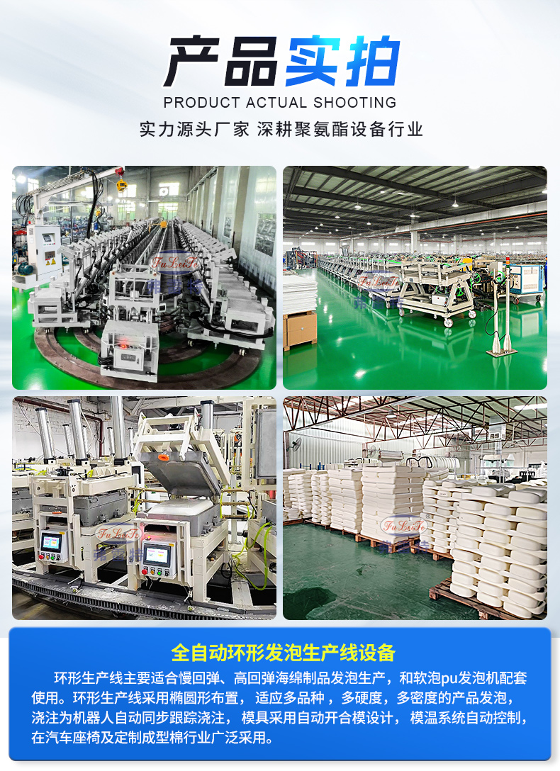環形生產線主要適合慢回彈、高回彈海綿制品的發泡生產,是和精密發泡機配套使用的,能提高生產效率,減少勞動強度,提高產品質量。環形生產線、軟泡發泡機是生產慢回彈,高回彈發泡制品必不可少的設備。流水線上配套有模具溫度控制系統,電源和氣源系統配置等,流水線傳動采用鏈條傳動裝置,這樣大大減少轉動電機的功率,達到節能省電的效果,旋轉速度無極可調,性能穩定,自動化程度高,擁有極高的性價比。