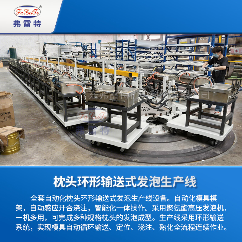 枕頭環(huán)形輸送式發(fā)泡生產(chǎn)線優(yōu)勢(shì):