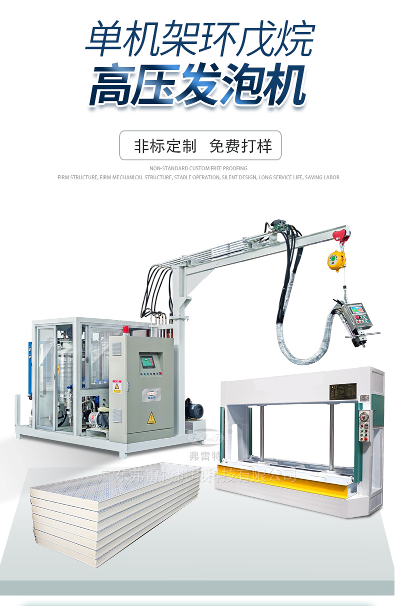 這是弗雷特(FLT)生產的環戊烷發泡機,是墨西哥客戶定制的,需要結合冷壓機配套使用,主要應用于空調發泡板、冷庫板和保溫板等。冷壓機用于各種板材及家具的平整定型,使板材粘合更加牢固、動力強勁、恒久穩定、工作壽命長20年行業經驗,源頭實力廠家。