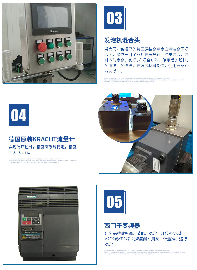 具有西門子PLC+雙變頻多功能安全裝置,38個(gè)智能自檢保護(hù)點(diǎn),獨(dú)立防靜電房,烷氣濃度等級(jí)自動(dòng)識(shí)別系統(tǒng),自動(dòng)2-3級(jí)抽風(fēng)系統(tǒng),西門子防爆電機(jī),獨(dú)立導(dǎo)地裝置,槍頭引線靜電導(dǎo)出裝置等,外接2組獨(dú)立對比恒溫,12~100種噴灌定時(shí)定量控制,開槍溫度鎖定,故障自檢報(bào)警等,本系統(tǒng)采用自清潔/止逆/防濺粘/新型V型發(fā)泡槍(實(shí)現(xiàn)3次混合功能),結(jié)構(gòu)美觀、操作方便。根據(jù)客戶實(shí)際情況,還可以一機(jī)雙槍使用,雙槍自動(dòng)切換,變頻節(jié)能、應(yīng)用自如,專為客戶量身訂做發(fā)泡完善系統(tǒng)。