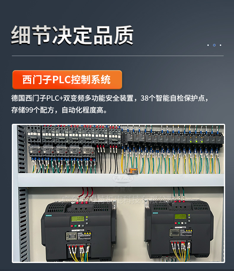 電氣控制:采用質量可靠的配置,以西門子PLC、施耐德配件為主要基礎。