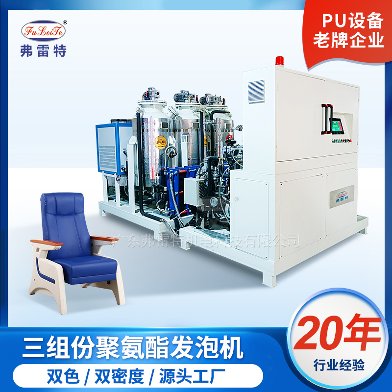 組份、多組份聚氨酯高壓發(fā)泡機是將多種不同配方的生產工藝通過設備的配置及程序設定融合到一臺機器去完成,例如:三組份聚氨酯高壓發(fā)泡機的設定條件是B+A1或A2,當工藝要求是B+A2時,系統(tǒng)將自動轉換成設定的要求B+A2進行灌注多組份的設定條件是 B1+ A1---B2+A2---B3+ A3最多6組份3種配方。